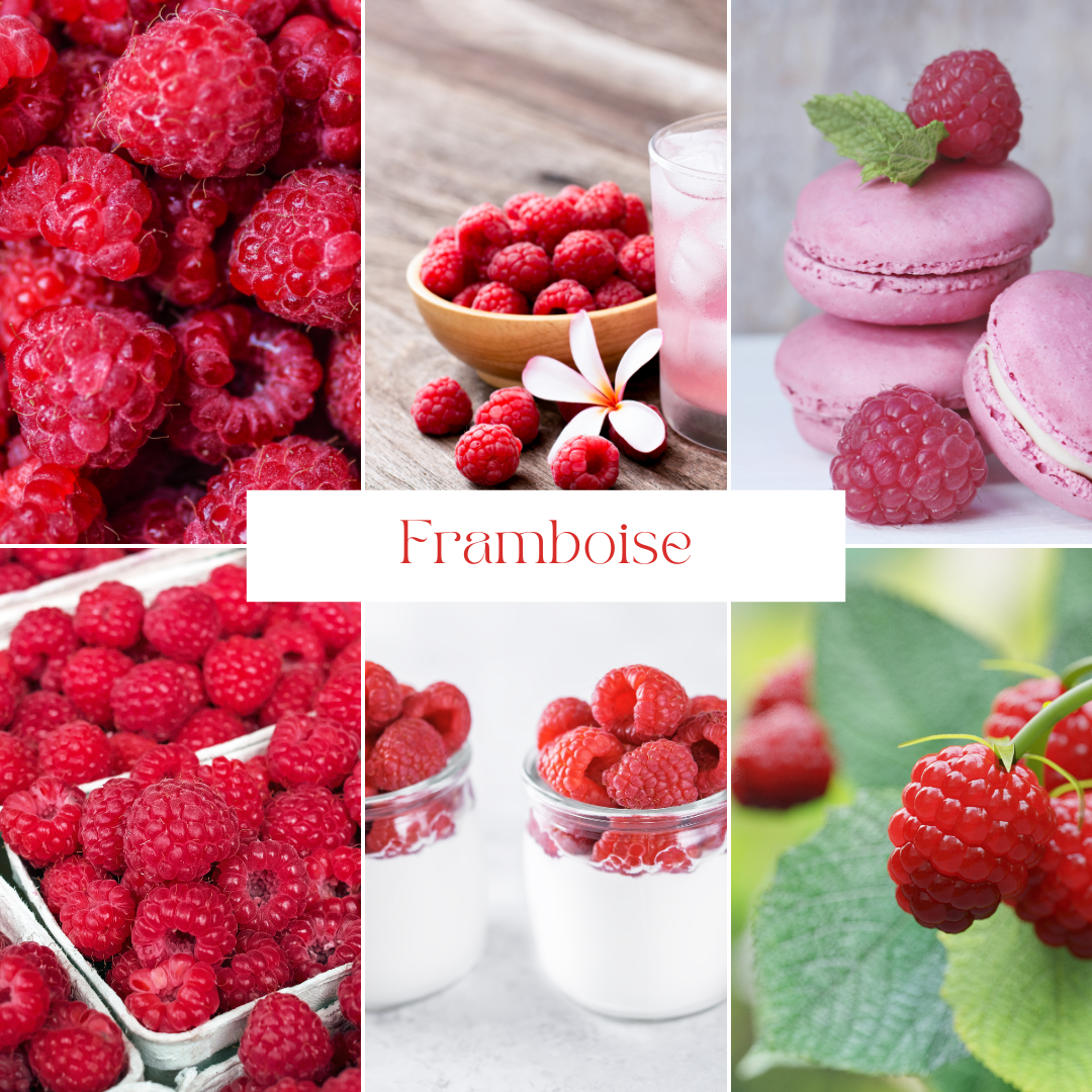 Fruit du framboisier, de la famille des rosacées, la framboise est un fruit rouge qui présente un aspect singulier. Il est formé de petites bulles appelées « drupes » et recouvert de poils microscopiques qui lui donnent un aspect velouté. Au nombre de 40 à 80 selon les variétés, ces drupes sont remplies d’une pulpe à la saveur acidulée et d’un petit pépin (la graine). La framboise peut peser entre 4 et 10 g et s’avère être un fruit charnu et parfumé, particulièrement délicat.